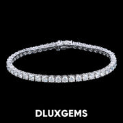 Crafted from 925 Sterling Silver and finished in Rhodium or 14K Gold, this 4mm bracelet offers balanced shine with a noticeable icy presence. Handset VVS1 D-Color Moissanite stones ensure unmatched sparkle and long-lasting brilliance.